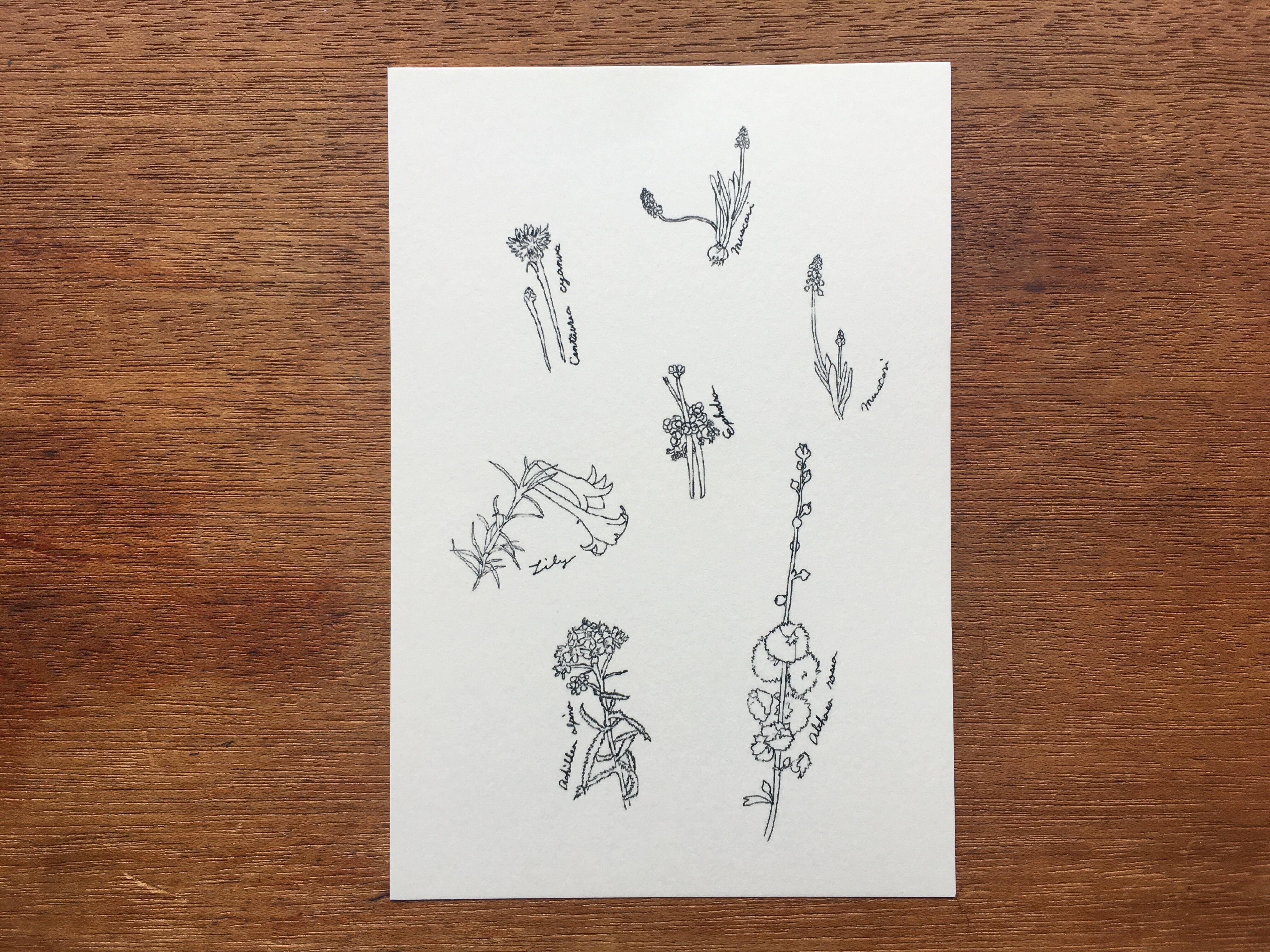 (ムスカリだけおまけでもう1つ描いて7つの植物)