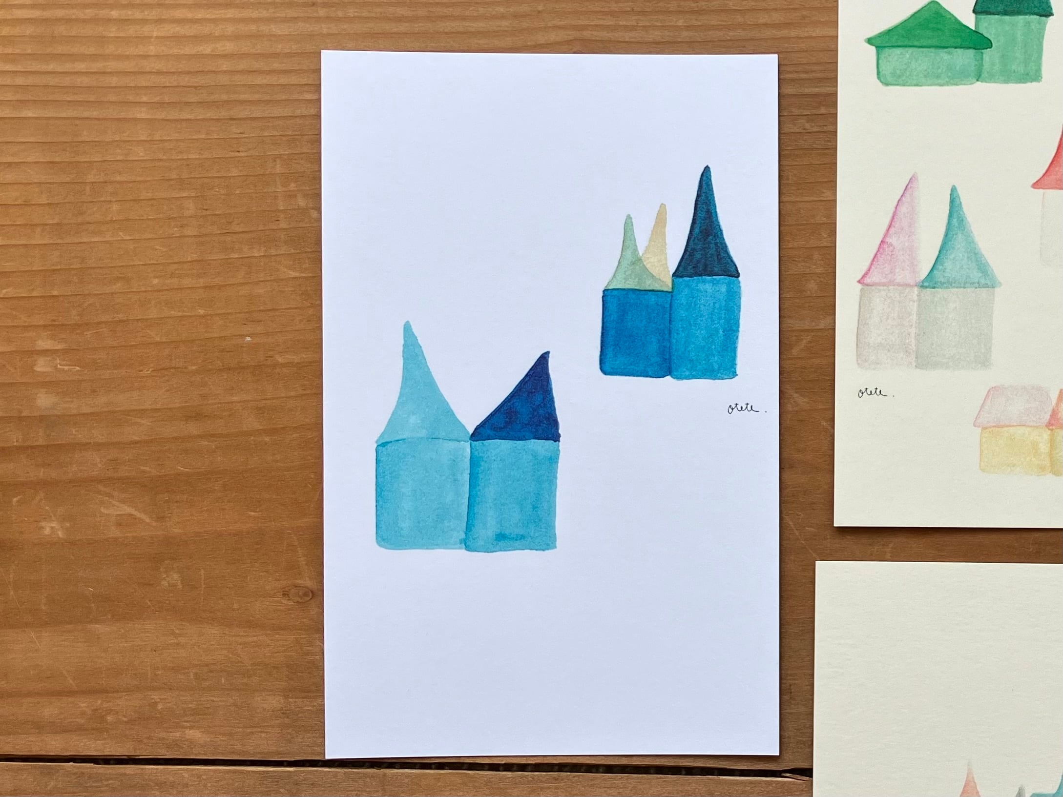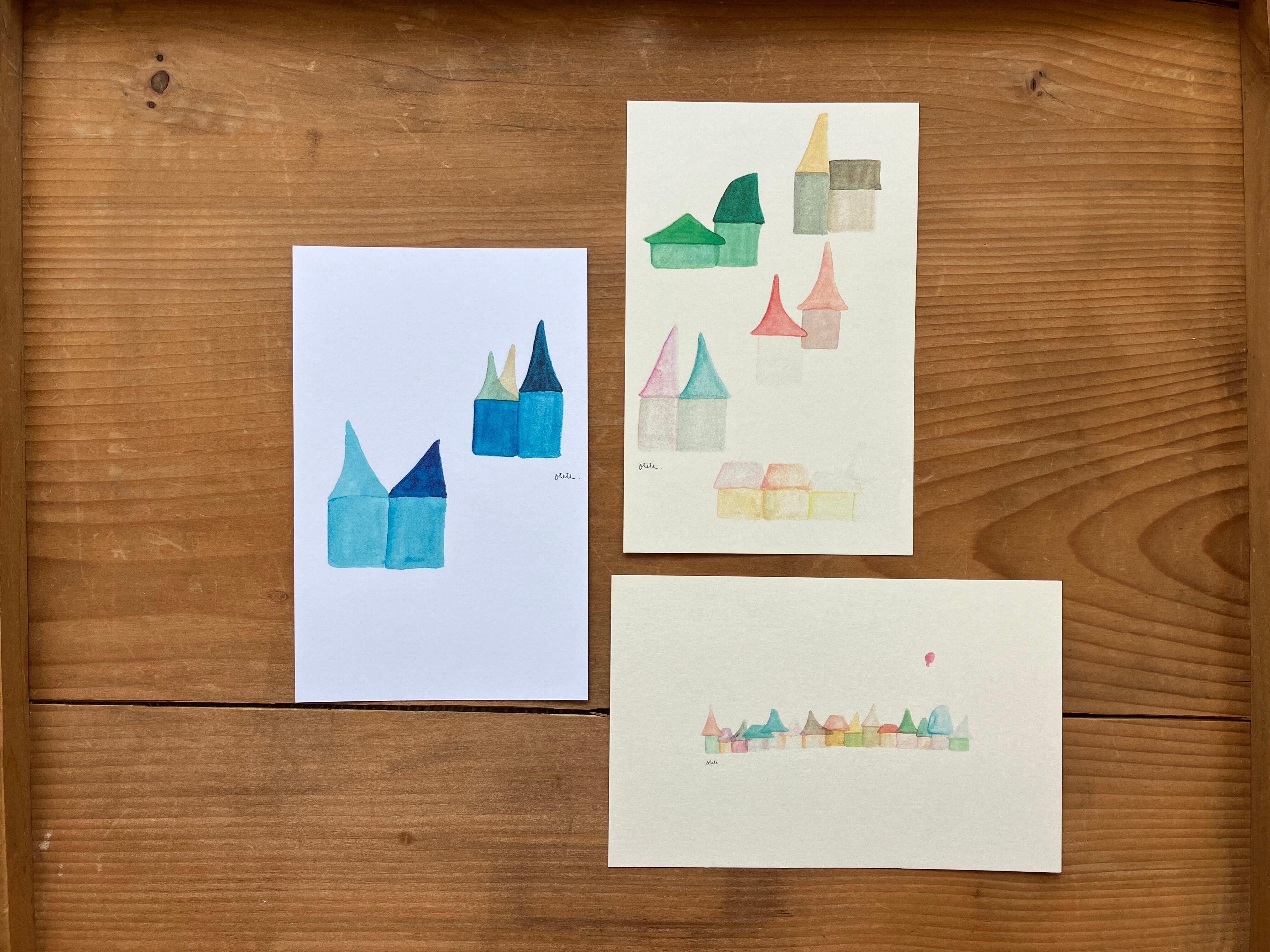 いろんな家が並んだポストカード